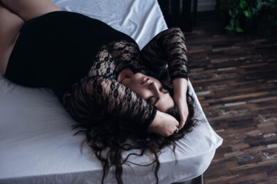 What’s my Client Wardrobe? I have pieces in sizes XS–4X for my clients to borrow for their shoots if they desire. You can try on different pieces during your Pre-Session Consultation here at the studio, and if any of them are winners, they’re yours to wear on your session date! To keep it sanitary, you must wear a nude (or black, for black pieces) g-string or thong underneath the outfit; they are, of course, washed after each wear as well.