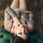 Ms. K was originally very hesitant about doing a boudoir shoot as she was not happy with her current weight (boy, could I relate!). I am SO GLAD she went through with her session because I could totally see her looking at herself differently at the reveal. I mean, who could blame her? (And her ink…😻!) Keep scrolling to admire her gorgeousness!